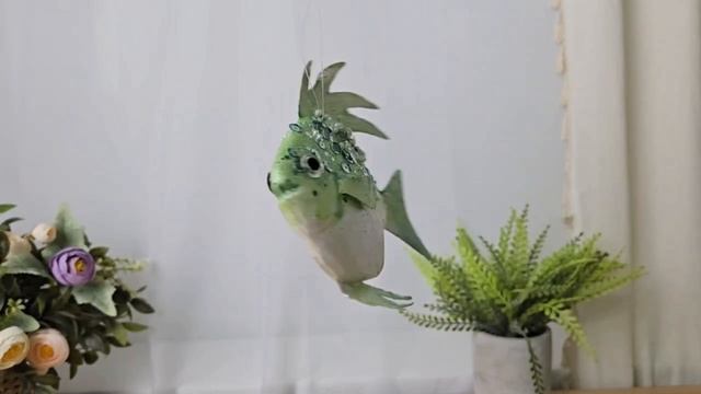https://www.morozko-shop.ru/ Ёлочная игрушка ЗЕЛЁНАЯ РЫБКА-АНГЕЛ, серия МИРОВОЙ ОКЕАН, пенополистирол, 25 см, 1151757-2