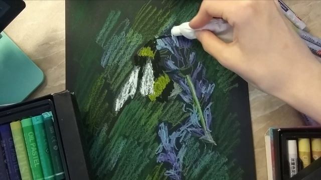 Рисую масляной пастелью цветок "Шмель" короткое видео