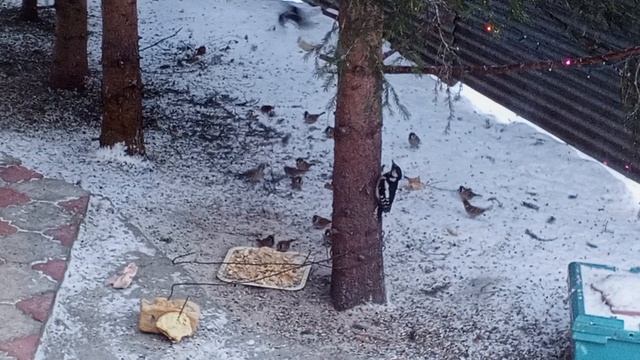 Дятлы с утра проголодались.Карта на корм 2202 2062 6013 7323