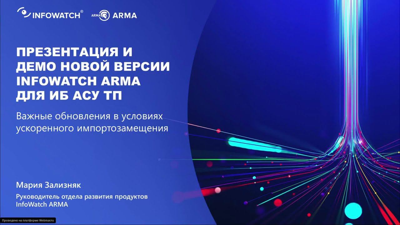 Обновления в системе кибербезопасности АСУ ТП InfoWatch ARMA. Усиление защиты АСУ ТП. Средства защиты АСУ ТП от угроз на уровне диспетчерского управления. Возможности системы для усиления кибербезопасности АСУ ТП с соответствием требованиям регулятора. Обо всем этом - в записи прошедшей онлайн-встречи. Больше полезных материалов в наших соцсетях, подпишитесь: Telegram https://t.me/infowatchout Вконтакте https://vk.com/infowatch В апреле были выпущены важные обновления в системе InfoWatch ARMA, благодаря которым можно реализовать максимум технических мер приказа 239 ФСТЭК России и усилить защиту АСУ ТП. На продуктовом интенсиве мы рассказали сразу обо всех выпущенных обновлениях в системе кибербезопасности АСУ ТП InfoWatch ARMA и провели демонстрацию новых возможностей: 1. Анализ трафика с помощью потокового антивируса в сертифицированном промышленном межсетевом экране нового поколения (NGFW) InfoWatch ARMA Industrial Firewall 2. Модуль взаимодействия с ГосСОПКА через интеграцию с личным кабинетом портала НКЦКИ посредством API в центре управления системой защиты InfoWatch ARMA Management Console 3. Сигнатурный поиск вредоносного ПО и возможности удаленной централизованной настройки и обновления антивирусных баз в InfoWatch ARMA Industrial Endpoint – средстве защиты АСУ ТП от угроз на уровне диспетчерского управления 4. И другие возможности системы InfoWatch ARMA для усиления кибербезопасности АСУ ТП с соответствием требованиям регулятора.