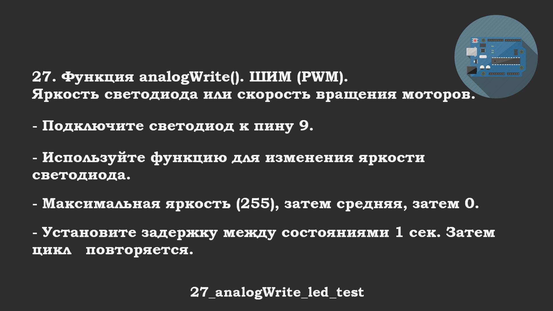#27 задача: analogWrite(). ШИМ (PWM). Используется для управления яркостью светодиодов. | #Arduino