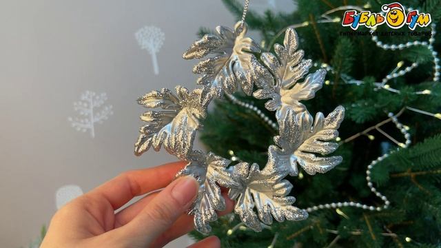 332296 Украшение елочное Венок из листьев серебро лофт 13см
