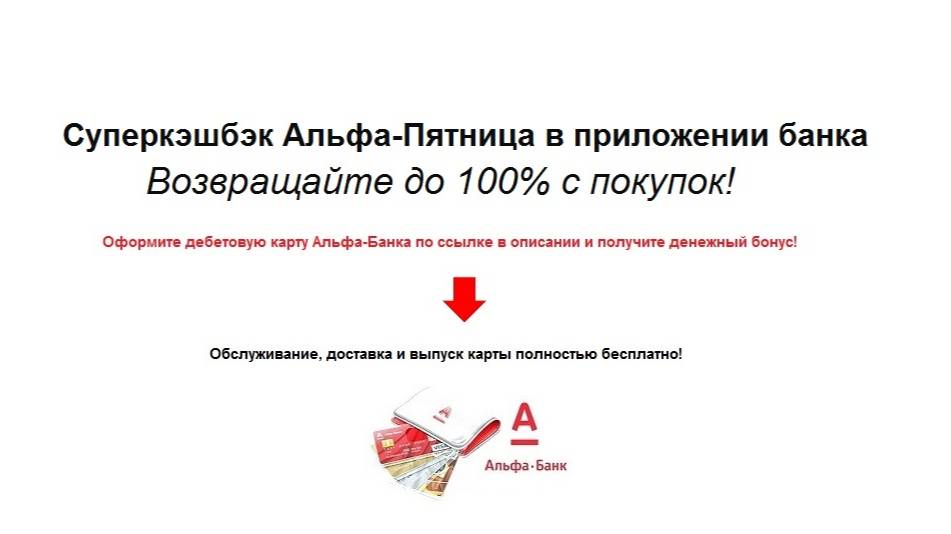 Супер кэшбэк в Альфа банке по пятницам до 100%