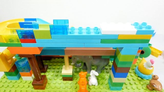 Веселые горки ☆ Конструктор Marble Run #ASMR! Слон, качели-чашки и волновой склон