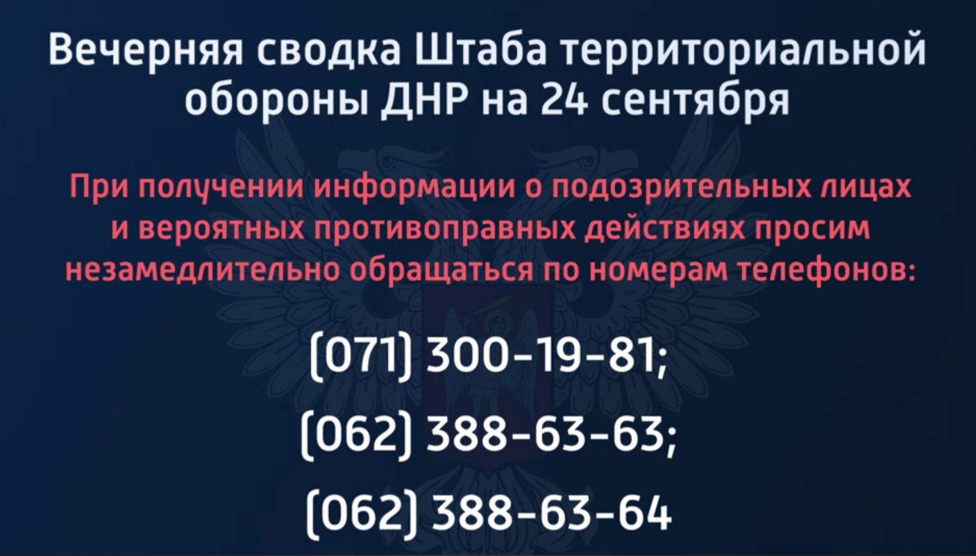 Вечерняя сводка Штаба территориальной обороны ДНР на 24.09.2022