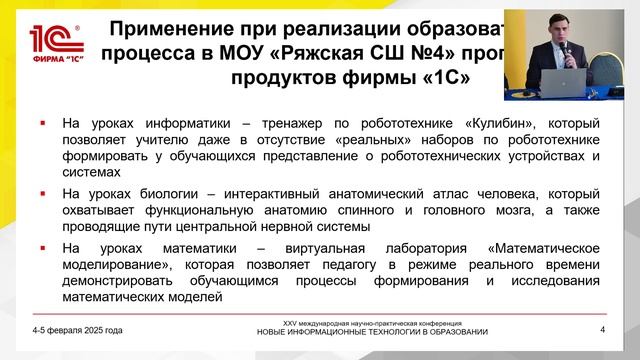 В докладе представляется обзорно-аналитическое исследование трансформации деятельности педагога в смарт-цифровом образовательном поле, а также формируемые при этом преимущества и риски. Анализируются процессы цифровизации и смартизации образовательного процесса общеобразовательных организаций, а также использование в деятельности педагога программных продуктов и проектов 1С.