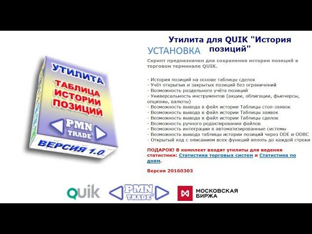 Утилита для QUIK "История позиций". Установка.