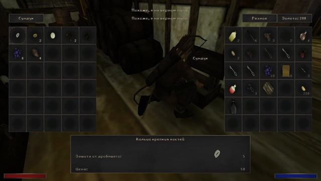 Начинаем качать одноручное оружие и продолжаем качать ловкость, берём меч на ловкость. Обчищаем склады, подставляем поганого пастуха Ото. Пробуем новые навыки меча по пути к алхимику Бодовину.