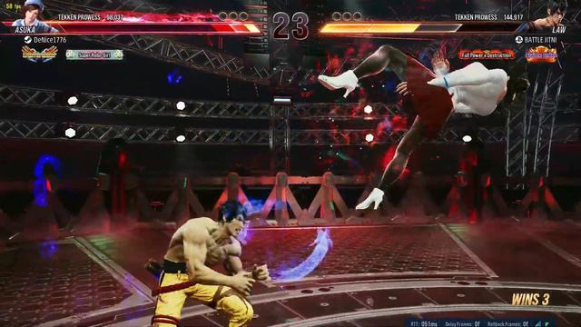 Asuka making it to Orange ranks in this one... Last night was weird. Got matched up with a brutal Law that was 8 ranks above my current position (Purple Rank vs. Yellow Rank, wtf...?) and decided to let that be the fuel that burned through everyone else after in Asuka's path (especially with the result of the match immediately after that set). Now all 4 of my main girls are in Orange. 0:00 King 6:11 Reina (1) 11:15 Jin 18:50 Law 24:15 Devil Jin [ragequit] 29:21 Jack-8 34:45 Hwoarang 40:14 Reina (2)