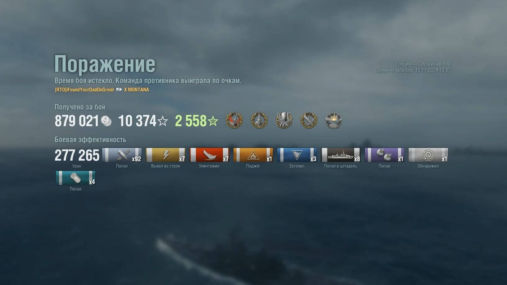 Линкор Montana. Игрок: iFoundYourDadOnGrindr (NA). Карта: Греция - Случайный бой. Урон: 277к. Montana - Линкор США 10 уровня. #сезонконтентаRUTUBE