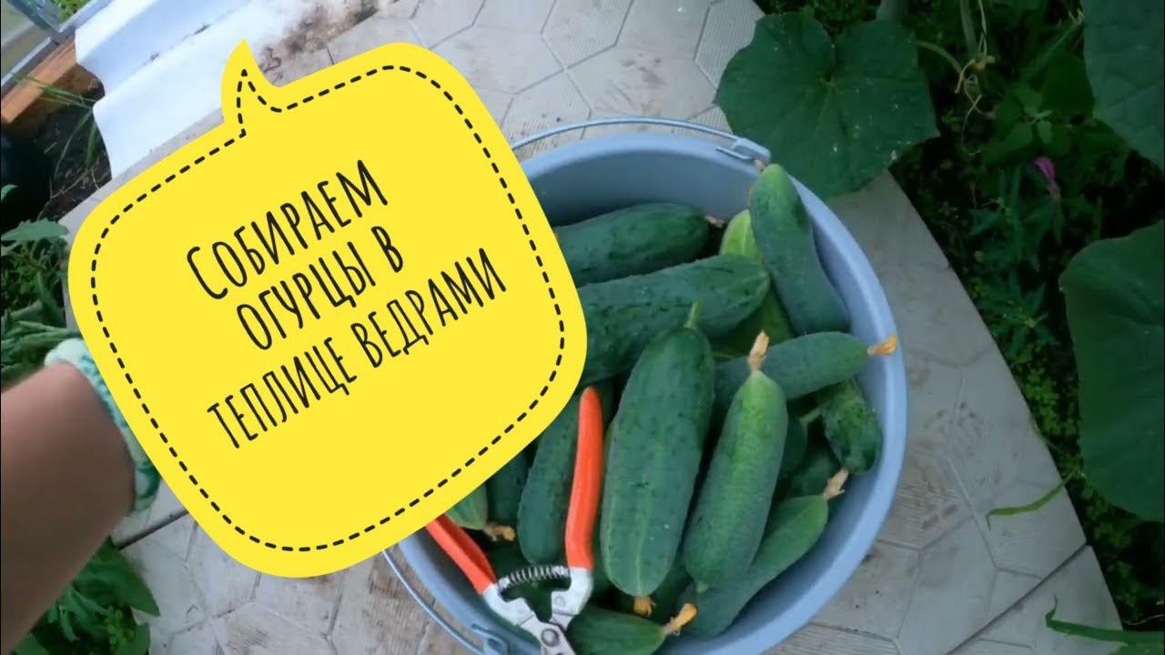 Собираем огурцы в теплице ведрами. Вишня поспела #огурцыведрами #теплица #огурцы