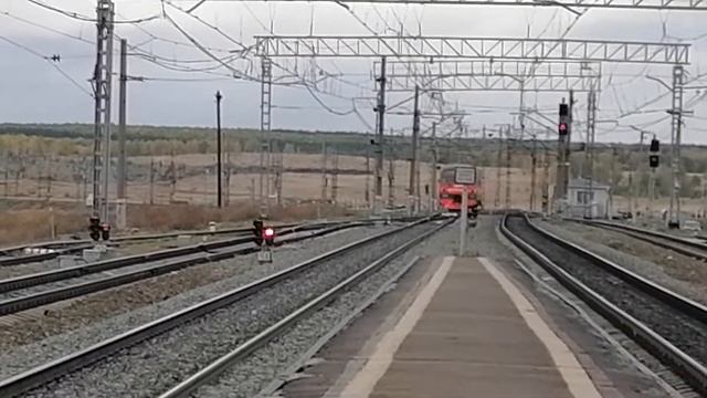 Электропоезд повышенной комфортности ЭД4М-0215 с пригородным поездом №6007 Челябинск—Кисегач прибывает на Ст. Бишкиль, Челябинская обл., ЮУЖД Дата: 19.09.2021