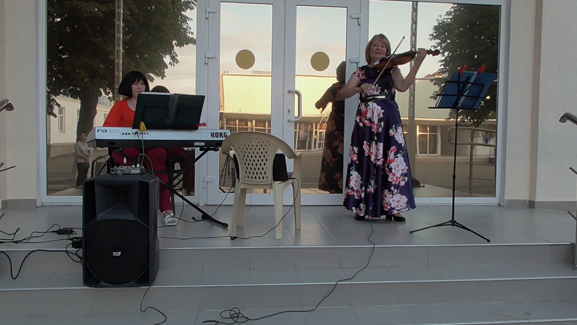 Вечер 7 августа 2022 г в г. Лабинске на импровизированной сцене напротив К\Т Восход, жителей и гостей города, радовали музыкой, Роза Калимулловна - электропиано и Надежда Григорьева - скрипка.