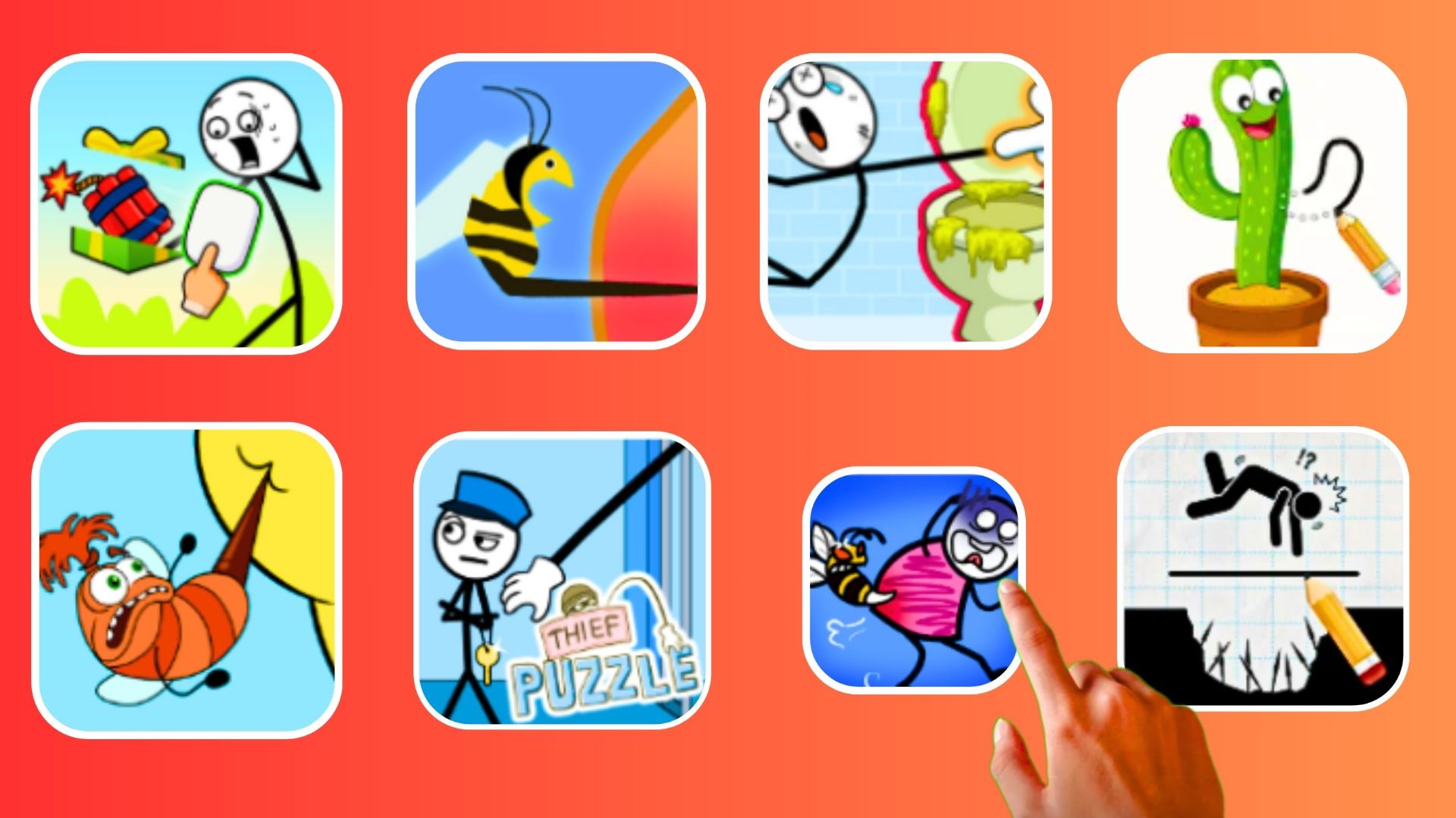 Help Me: Tricky Puzzle, Thief Puzzle, Help Me: Brain Tricky Story, Draw 2 Save: Stickman Puzzle