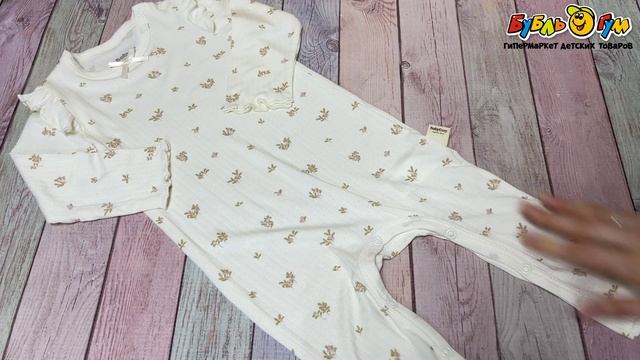 355404 Комбинезон BabyCosy на кнопках с открытыми ножками оборками и принтом бежевый