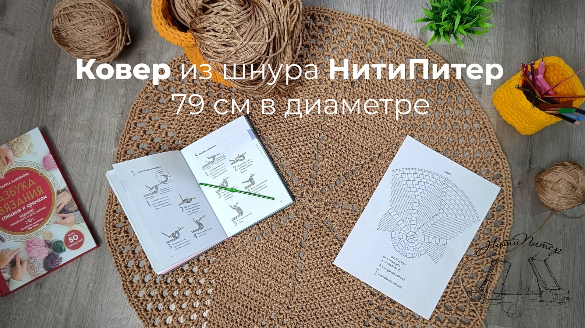 Сайт где есть все материалы из этого мастер‑класса по рукоделию и по доступным ценам https://nitipiter.ru/ Ковёр получается 79 см в диаметре. Для вязания вам потребуется 460 м полиэфирного шнура 3 мм и крючок 4 мм. Полиэфирный шнур 850 метров для корзин и ковров по ссылке https://nitipiter.ru/products/61317791 ВБ https://www.wildberries.ru/catalog/531071559/detail.aspx?targetUrl=GP&utm_source=vkentryprofit&click_id=v1_1453514142 видео https://vkvideo.ru/@losmaralexhm Заходите в нашу группу в Вк: https://vk.com/public149924492 НитиПитер на WB по ссылке: https://www.wildberries.ru/brands/nitipiter-559295