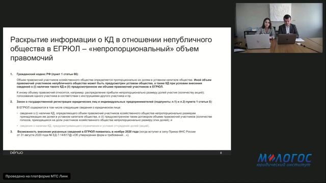 «Раскрытие информации о корпоративном договоре: законодательное регулирование и актуальные вопросы» авторская видеолекция Евгения Глухова и Марии Шереметьевой В рамках данной лекции рассмотрены вопросы, связанные с обязательствами по уведомлению общества и иных лиц о заключенном корпоративном договоре, а также в ряде случаев по отражению соответствующей информации в ЕГРЮЛ и публичному раскрытию. На лекции рассмотрены также практические вопросы, связанные с таким уведомлением и раскрытием. Лекторы: Евгений Глухов — доктор права (Венский университет), к.э.н., старший преподаватель ВШЭ, преподаватель Юридического института «М-Логос», партнер юридической фирмы Denuo (https://m-logos.ru/lecturers/gluhov-evgenij-vladimirovich/ ) Шереметьева Мария — старший юрист юридической фирмы Denuo *** Эту лекцию можно посмотреть на сайте Института https://m-logos.ru/product/m-kawbooks-avtorskaya-videolekcziya-evgeniya-gluhova-i-marii-sheremetevoj-raskrytie-informaczii-o-korporativnom-dogovore-zakonodatelnoe-regulirovanie-i-aktualnye-voprosy-2/ *** Более подробно данные вопросы рассматриваются в рамках онлайн-курсов повышения квалификации Юридического института "М-Логос": ✅ Структурирование купли-продажи акций (доли участия в ООО) и корпоративных договоров по российскому праву: практические и правовые аспекты 05.02.26 - 15.05.26 (62 ак.ч.) https://m-logos.ru/onlain_seminars/onlajn-programma-povysheniya-kvalifikaczii-strukturirovanie-kupli-prodazhi-akczij-doli-uchastiya-v-ooo-i-korporativnyh-dogovorov-po-rossijskomu-pravu/164481_05022026_15052026/ ✅ top! Комплексное долгосрочное повышение квалификации юристов 17.02.26 - 16.07.26 (191 ак.ч.) https://m-logos.ru/onlain_seminars/vechernyaya-onlajn-programma-kompleksnoe-dolgosrochnoe-povyshenie-kvalifikaczii-yuristov/164492_17022026_16072026/ ✅ Авторский курс Е.В. Глухова «Сделки купли-продажи бизнеса и создание совместных предприятий: переговоры, оформление договора, ключевые условия» 05.03.26 - 15.05.26 (31 ак.ч.) https://m-logos.ru/onlain_seminars/avtorskij-kurs-e-v-gluhova-sdelki-kupli-prodazhi-biznesa-i-sozdanie-sovmestnyh-predpriyatij-peregovory-oformlenie-dogovora-klyuchevye-usloviya/164487_05032026_15052026/ *** 📚 Все курсы по вопросам корпоративного права и корпоративных сделок смотрите здесь https://m-logos.ru/direction/corporate/ 🎬 Рекомендуем другие бесплатные лекции Института (раздел регулярно обновляется) https://m-logos.ru/online_lectures *** Анонсы предстоящих бесплатных лекций публикуются в социальных сетях Института: ВКонтакте https://vk.com/m_logos Телеграм-канал https://t.me/m_logos