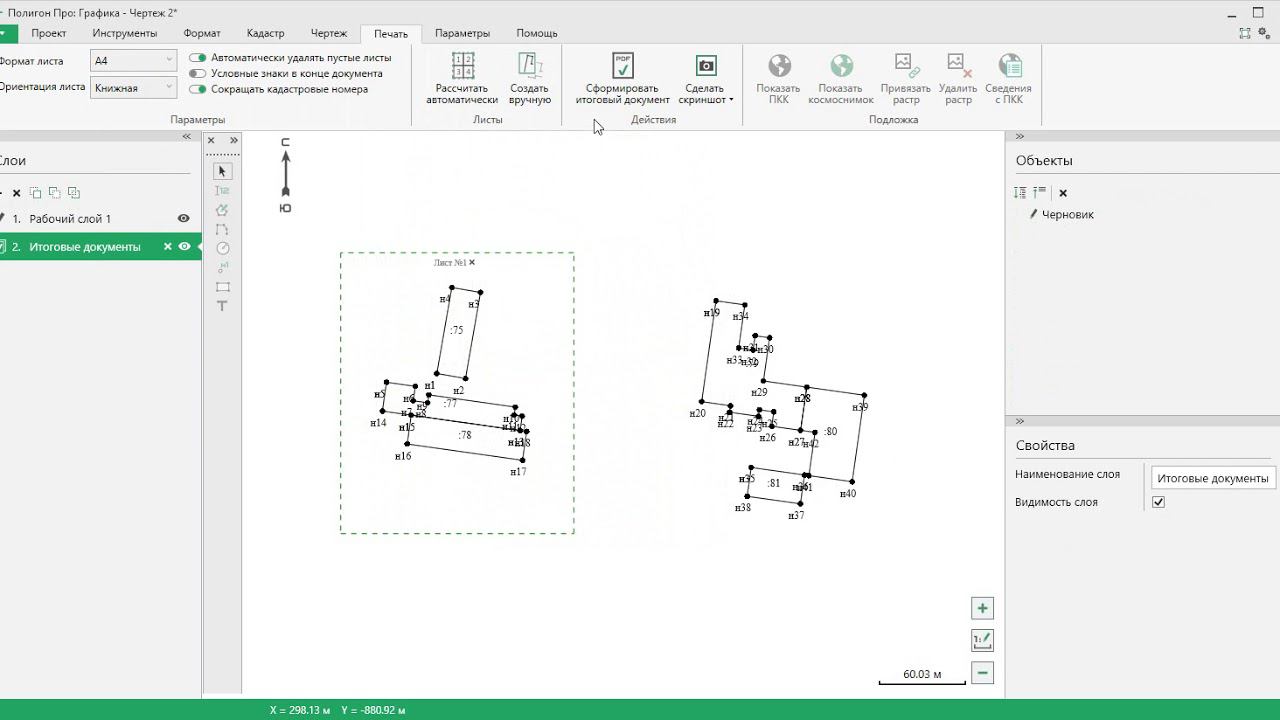 Формирование печатного документа чертежа с созданием листа вручную в "Полигон Про: Графика"