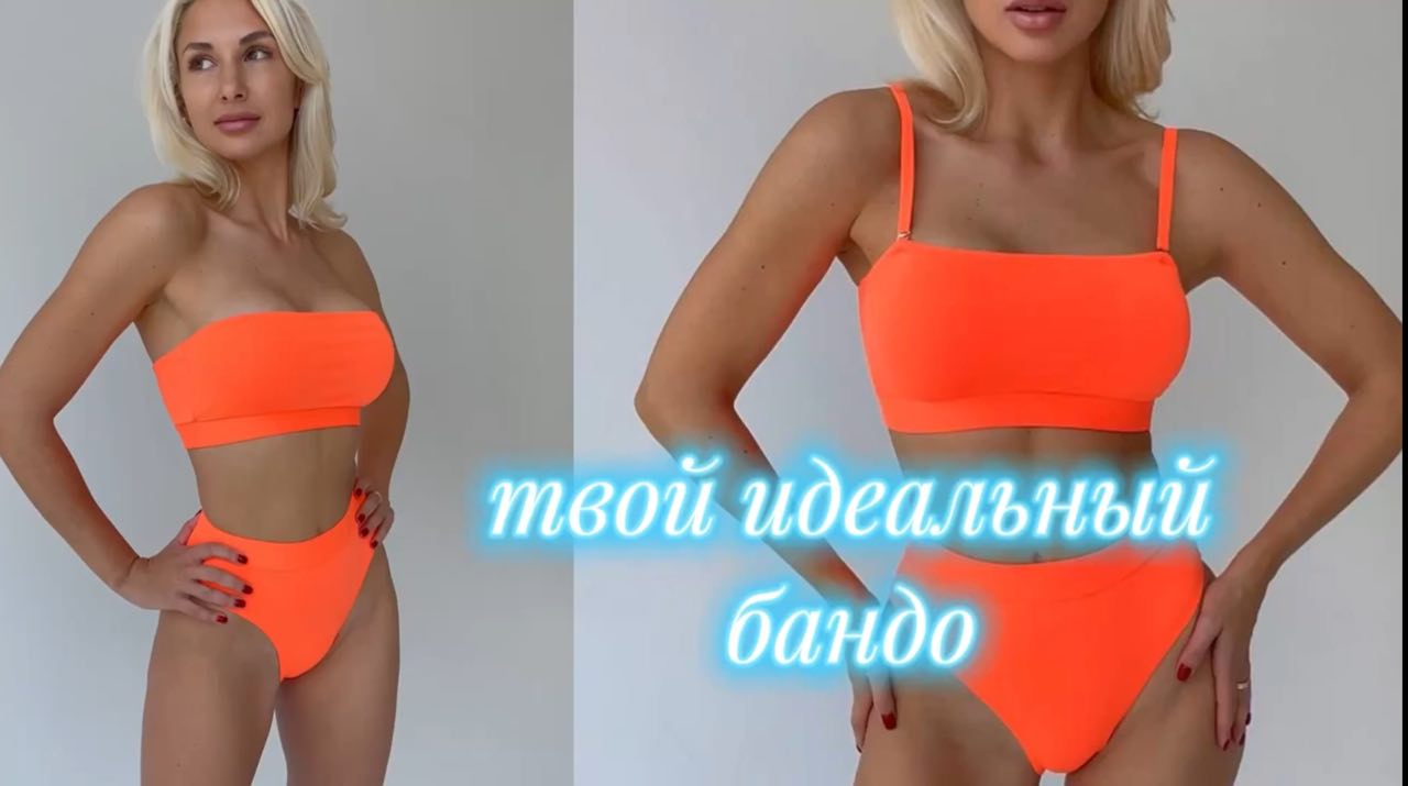 Раздельный купальник-бандо, моделирующий стройный силуэт.