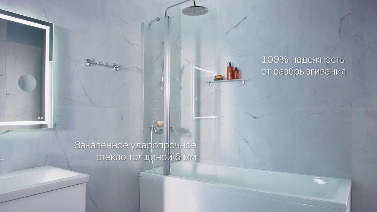 Душевое ограждение на борт ванны Gem - дверь с неподвижным стеклянным элементом, удобная конструкция при монтаже рядом со смесителем для ванны. https://ampm-store.ru/catalog/dushevaya-shtorka-na-vannu-80kh140-sm-povorotnaya-gem-w90bs-d3w5-140ct/