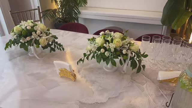 Свадебная композиция из живых цветов в креманке