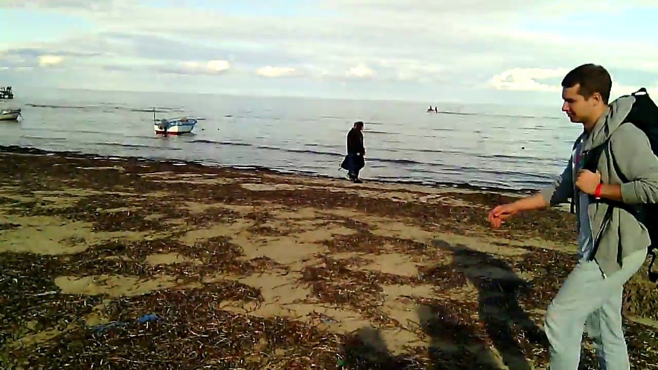 Тунис Зарзиз грязный пляж, море. Tuniská pláž Zarziz gryaznyy, více.