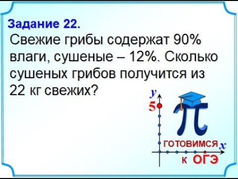 6 класс. Нахождение части от числа и числа по его части. Свежие грибы содержат 90% влаги, сушеные – 12%. Сколько сушеных грибов получится из 22 кг свежих?