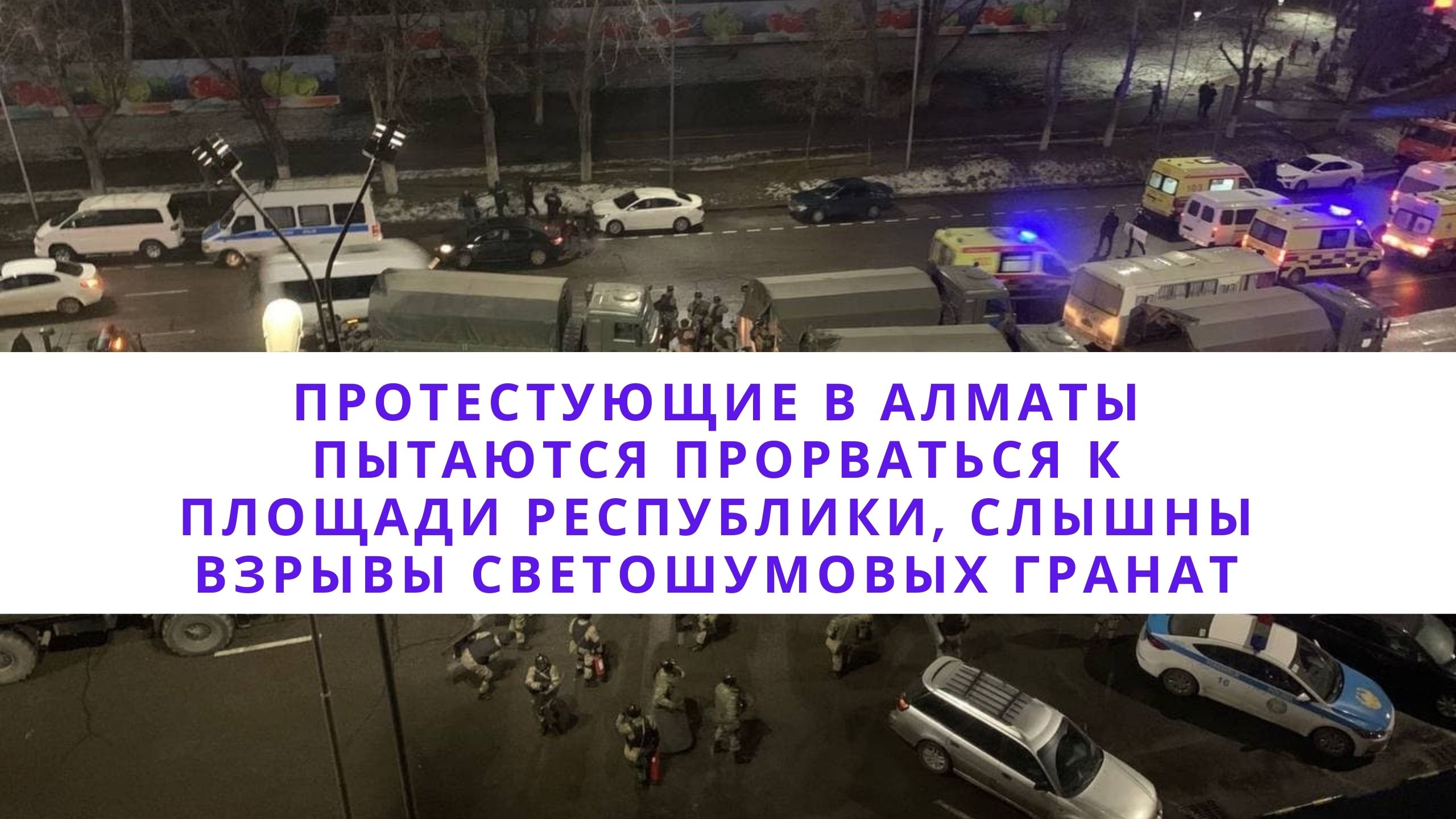 Протестующие в Алматы пытаются прорваться к площади Республики, слышны взрывы светошумовых гранат///