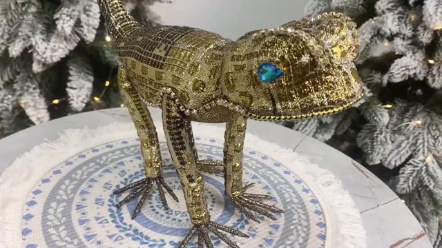 Декоративная фигура ЯЩЕРИЦА - ТРОПИЧЕСКИЙ ГОСТЬ, золотистая, 28 см, 1135257