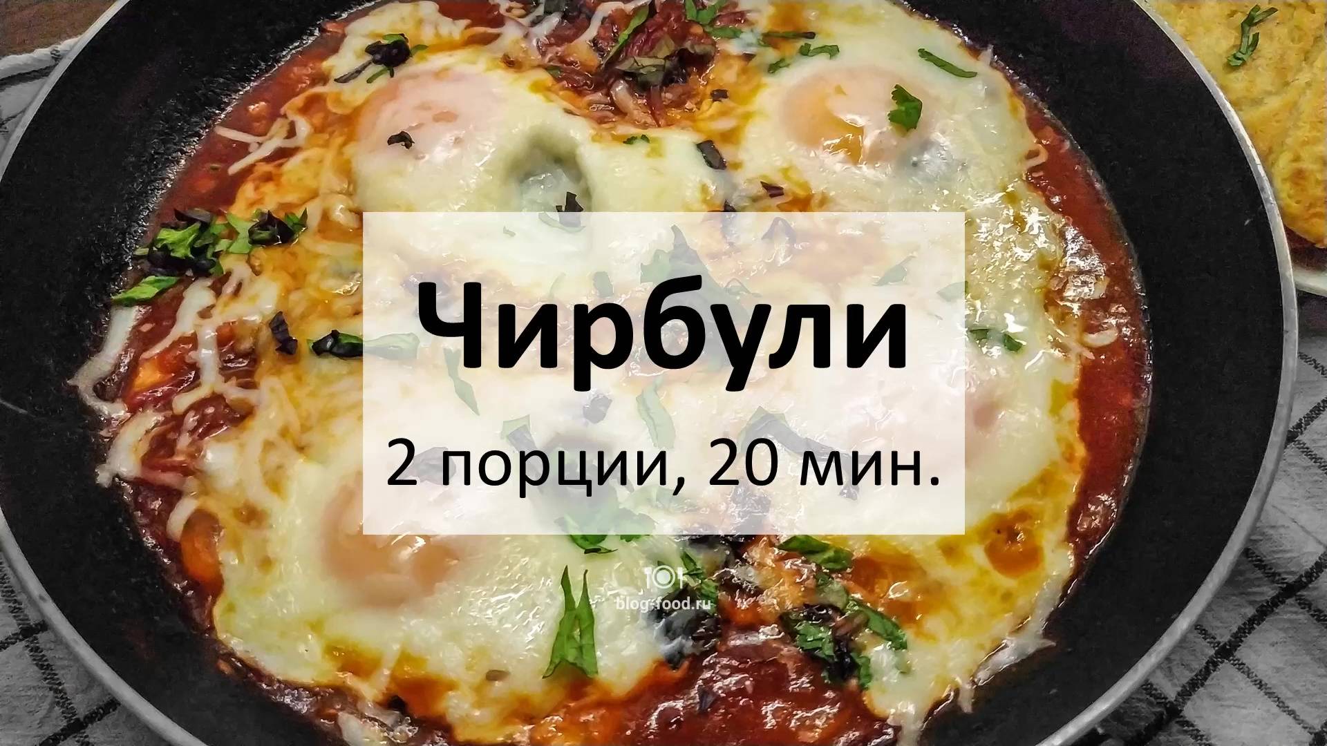 Всем привет. Сегодня приготовим традиционную грузинскую яичницу чирбули. Принцип аналогичен шакшуке (яйца готовятся в густом томатном соусе), однако по вкусу они отличаются из-за разных наборов специй и добавок. • Яйца, 4 шт. • Помидор, 1 шт. • Красный лук, 1 шт. • Ткемали, 100 гр. • Сулугуни, 50 гр. • Томатная паста, 15 гр. • Чеснок, 2 зубца • Грецкие орехи, 1 шт. • Молотый тмин, 1 ч. л. • Кинза, базилик • Чёрный перец, растительное масло, соль Лук режем полукольцами, зелень мелко, чеснок и орехи рубим, сыр натираем на крупной тёрке. Помидор очищаем от кожи и нарезаем ломтиками. Обжариваем лук минуту на сильном огне в небольшом количестве растительного масла, кладём чеснок, жарим минуту, добавляем томатную пасту, жарим полминуты, кладём тмин, помидор, ткемали, 30 мл воды, орехи, тушим 3 минуты на маленьком огне. Делаем четыре лунки, разбиваем яйца, готовим на среднем огне пару минут, выкладываем сверху зелень (немного оставив на подачу), сыр, накрываем крышкой и готовим три минуты. Подаём с зеленью. Приятного аппетита! Читать на сайте с картинками: https://blog-food.ru/1233 #кулинария #рецепты #еда #рецепт #грузинскаякухня #яйца #ткемали #помидоры #шакшука