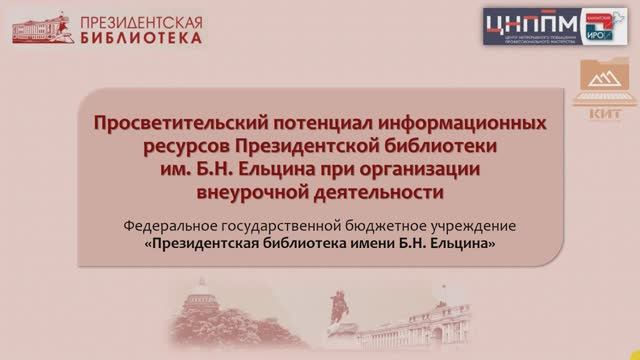 Видеолекция "Просветительский потенциал информационных ресурсов Президентской библиотеки им. Б.Н. Ельцина при организации внеурочной деятельности"