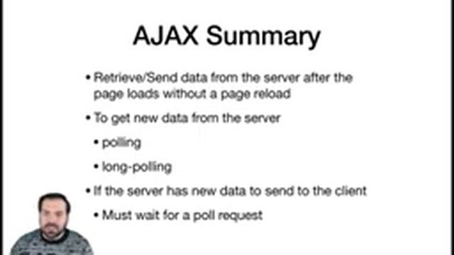 Lecture 19 of CSE 312: Web Applications by Dr. Jesse Hartloff. Topics covered: AJAX summary, WebSocket overview Lecture slides: https://cse312.com/static_files/slides/4_1_WebSocket_Handshake.pdf Course website: https://cse312.com/ Watch the lectures live on MWF from 10:20-11:10am EST: https://www.twitch.tv/hartloff