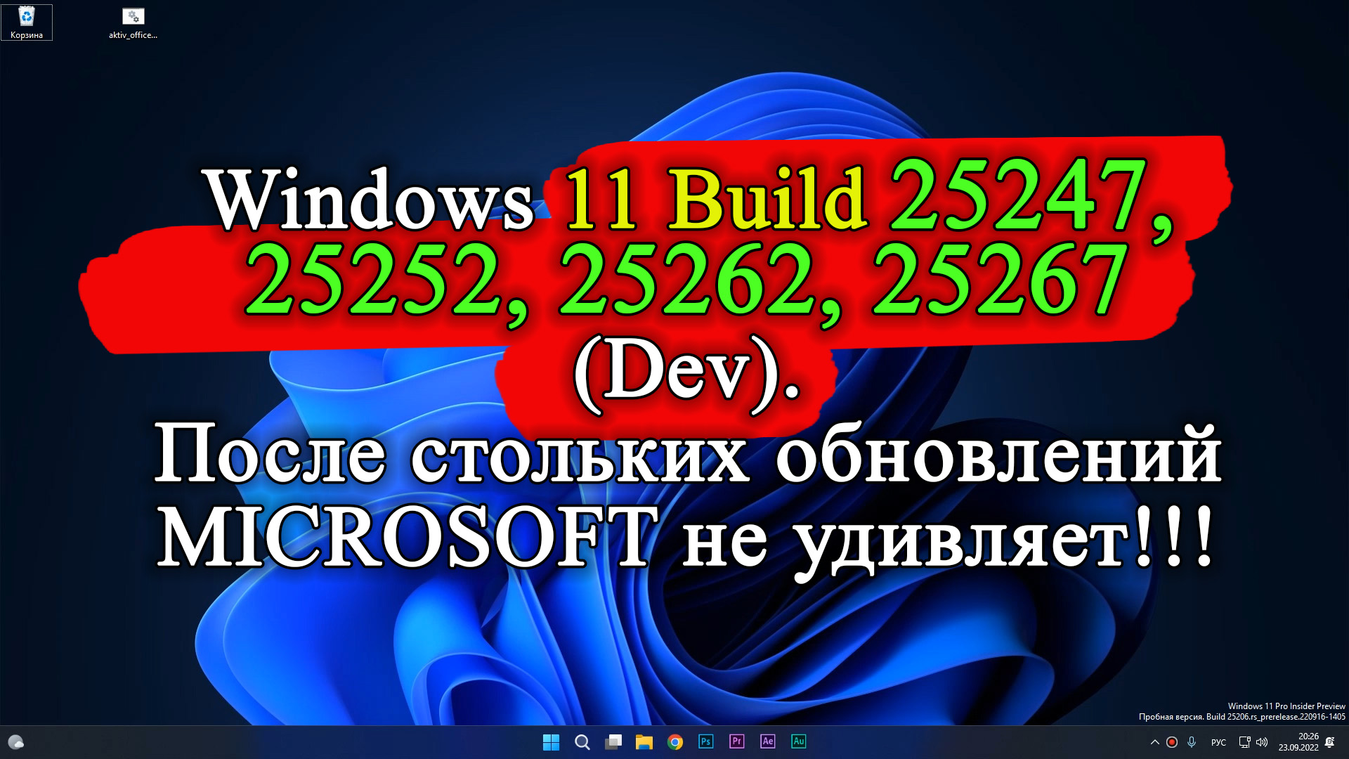 MICROSOFT не могут удивить никого в новых сборках Windows 11 Build 25247, 25252, 25262, 25267 (Канал Dev), которые доступны для тестирования всем пользователям предварительной оценки WINDOWS! Новые функции. Почему для русскоязычного комьюнити мало новых функций. Какие косяки устранены? Почему новые функции доступны не всем. Как установить предварительную сборку на неподдерживаемый ПК и многое другое! Подробное описание обновлений Сборка 25247: https://blogs.windows.com/windows-insider/2022/11/18/announcing-windows-11-insider-preview-build-25247/ Подробное описание обновлений Сборка 25252: https://blogs.windows.com/windows-insider/2022/11/28/announcing-windows-11-insider-preview-build-25252/ Подробное описание обновлений Сборка 25262: https://blogs.windows.com/windows-insider/2022/12/09/announcing-windows-11-insider-preview-build-25262/ Подробное описание обновлений Сборка 25267: https://blogs.windows.com/windows-insider/2022/12/14/announcing-windows-11-insider-preview-build-25267/ Как включить недоступные функции с помощью vivetool: https://rutube.ru/video/0c9fe06b534e100563c947943ef30d3d/ Обход ограничений обновления insider: https://rutube.ru/video/fed8701bfb9d03f177ff29a7db6a8c26/