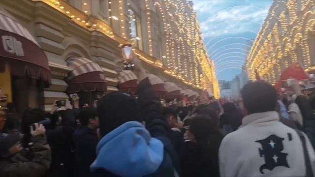 Толпа китайцев собралась в центре Москвы возле ГУМа — они размахивают флагами КНР и что-то кричат