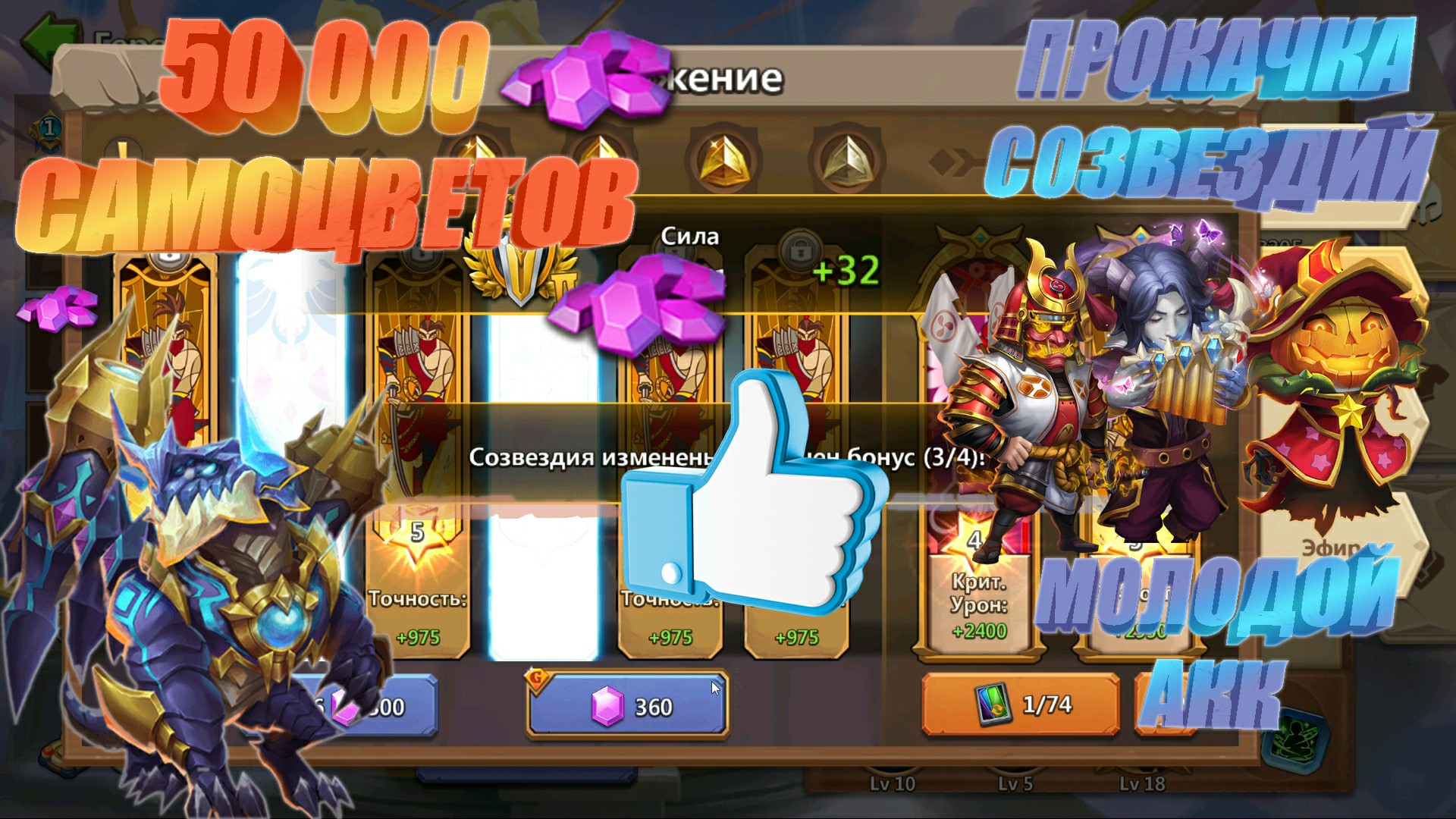 МОЛОДОЙ АКК, ПРОКАЧКА ДИНО, СОЗВЕЗДИЯ, #БитваЗамков #castleclash, #cbcevent, #IGG