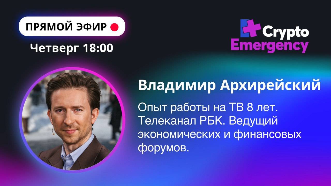3 апреля, в четверг в 18:00 состоится прямой эфир! 🟢 Владимир Архирейский — Опыт работы на ТВ 8 лет. Телеканал РБК. Ведущий экономических и финансовых форумов. На эфире обсудим: ➡️ Какие ограничения освещения тем криптовалют есть на телевидении? ➡️ Анонс коллекции крипточасов и криптоювелирки ➡️ Главные принципы инвестирования Владимира Эти и другие темы обсудим на эфире — ставьте напоминание и обязательно приходите 🔥 ✅ Ссылка на эфир https://t.me/cryptoemergencychat