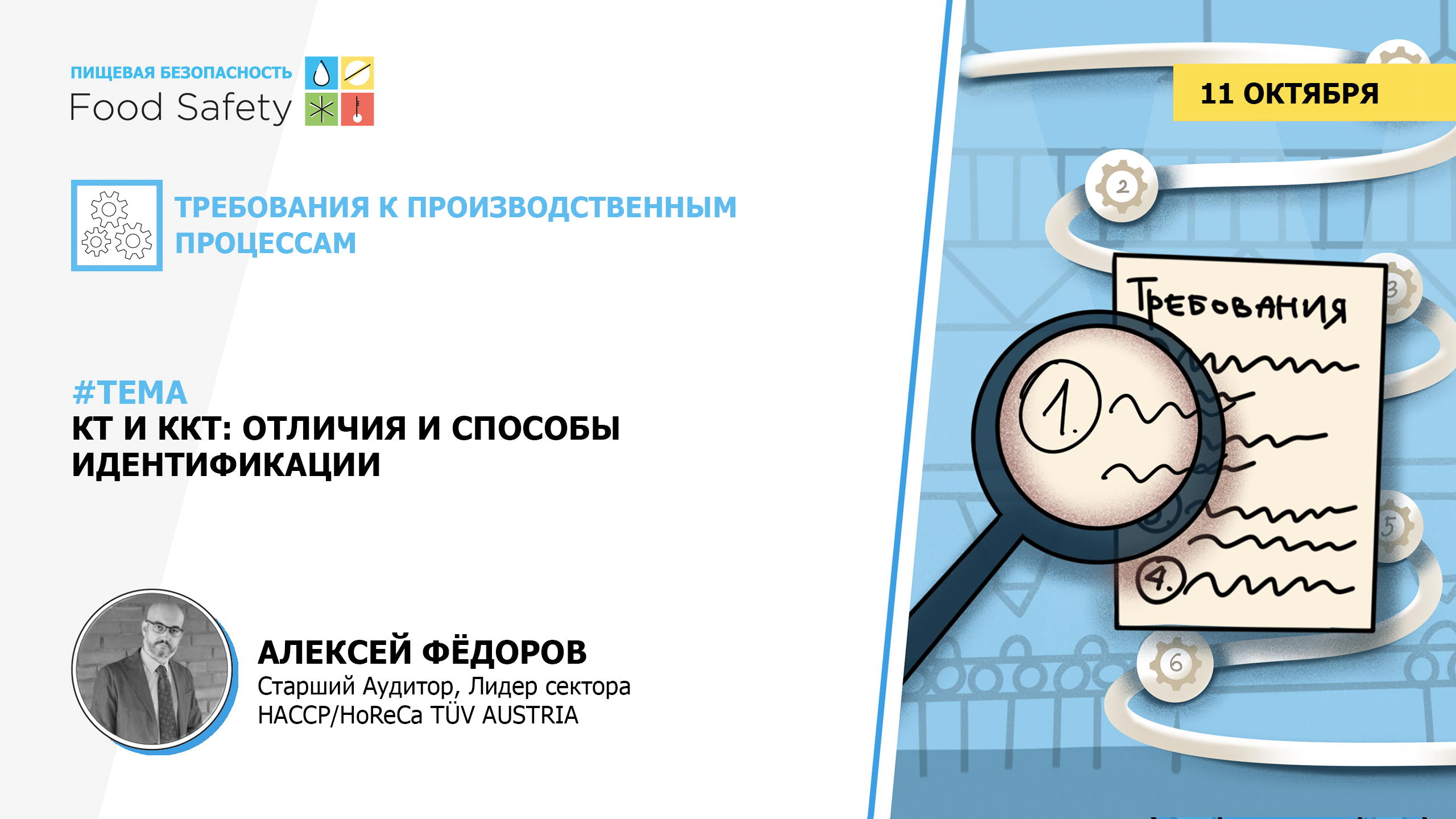 Алексей Фёдоров Старший Аудитор, Лидер сектора HACCP/HoReCa TÜV AUSTRIA Как определить: это контрольная точка (КТ) или критическая контрольная точка (ККТ) Применение инструмента «Дерево принятие решений» и аналогичных инструментов для определения ККТ