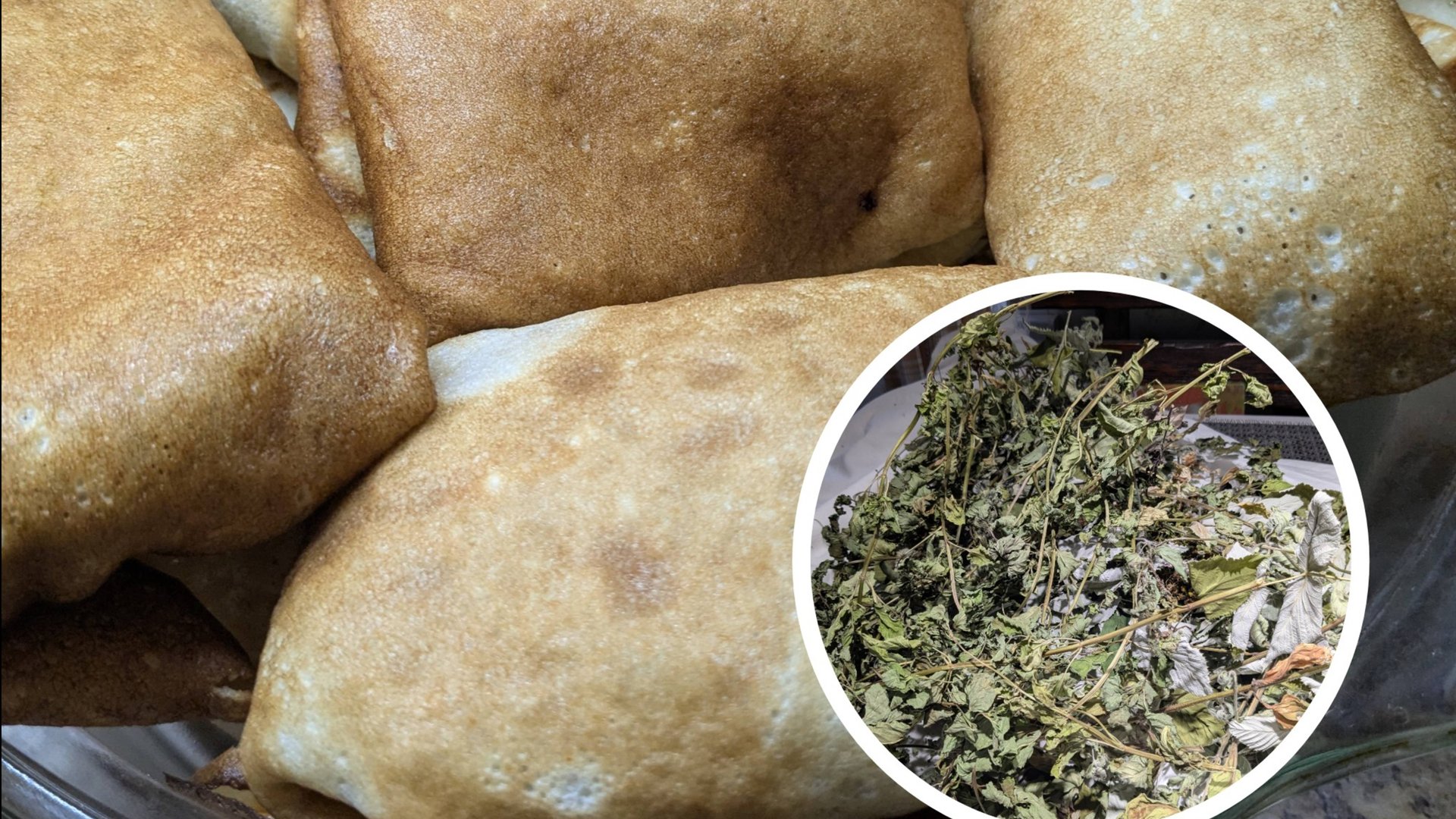 Блины с картошкой и блины с потрошками пока на улице дождик.
