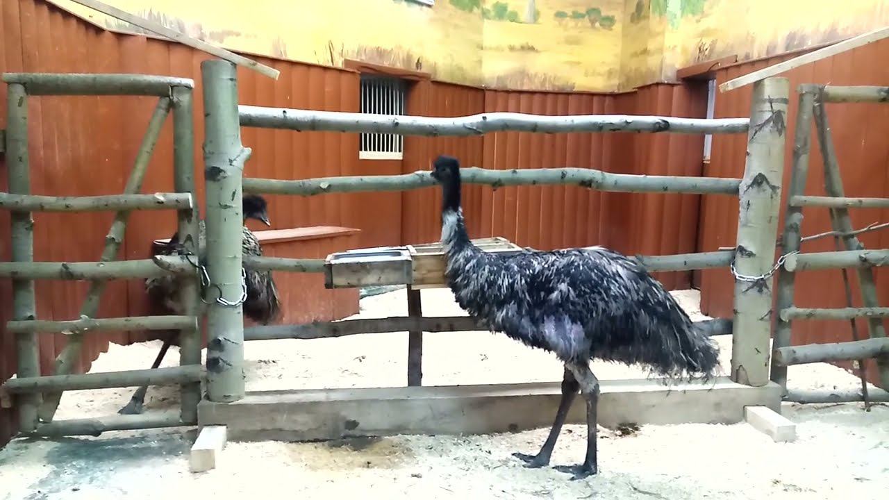 Один эму пьёт воду, другой наблюдает за посетителями 06.01.2024