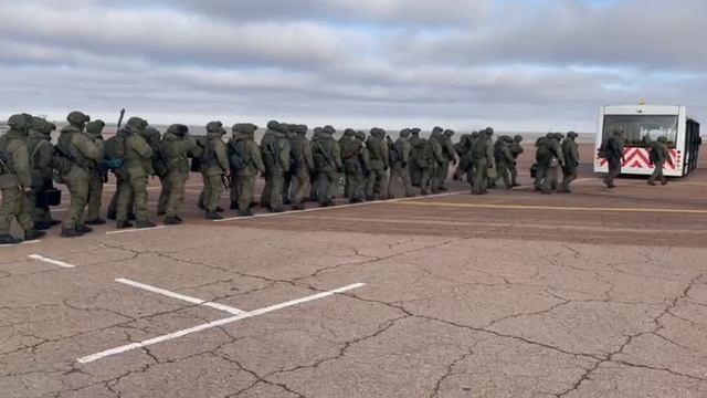 Первые российские миротворцы высадилась на аэродроме Байконура.