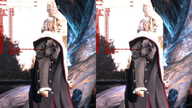 DLSS 2.5 Ultra Performance vs. FSR 3 Ultra Performance -Forespoken RTX 4090|8K|Ultra Settings Global Settings are on max or ultra with motion blur disabled. 8K resolution. Both Upscalers are set to Ultra Performance. FSR 3's frame generation option is enabled. FSR 3 presents an overall aliased and less detailed image quality on assets. However there seems to be an inconsistency in framerate in well-lit areas when the camera is in motion. Which causes a jittering effect.