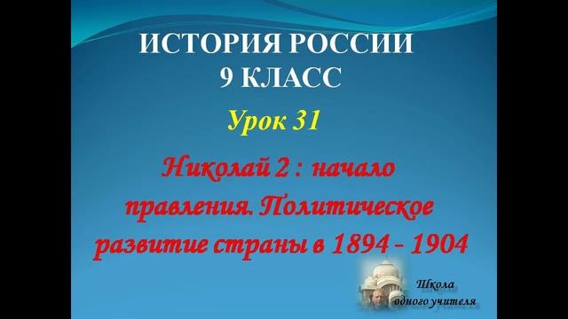 Доп занятие 31 по истории 9 класс по теме Николай II: начало правления. Политическое развитие страны в 1894–1904 гг.