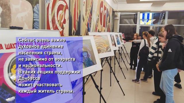 «Куzбасс Zа шахтерский Донбасс». 30 сентября - День воссоединения Донбасса и Новороссии с Россией. Выставка юных художников посвящена Дню воссоединения новых регионов с Россией. Региональный творческий конкурс, посвященный празднованию Дня шахтера, в Кузбассе проходит с 2016 года в рамках государственной программы «Патриотическое воспитание граждан Российской Федерации». Организатор конкурса – коллектив педагогов Детской художественной школы № 14 им. А.А. Леонова (Тисульский муниципальный округ) отмечен сертификатом Администрации города Кемерово за популяризацию почетной профессии – шахтер. На выставке представлено 70 художественных произведений, посвященных шахтерскому труду, авторами которых стали юные кузбассовцы.