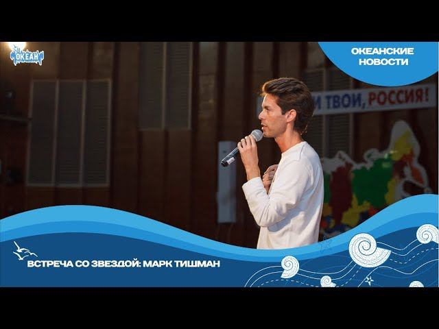 «Здравствуйте, лучшие люди страны». Сегодня в гостях у детского центра российский певец, композитор и телеведущий Марк Тишман. «Ребят, я по-хорошему вам завидую, что вы находитесь в таком потрясающем месте. Я покорён „Океаном“, его красотой. Очень рад за вас, что именно здесь вы занимаетесь творчеством», — признался гость. За короткое время Марк успел рассказать ребятам о своей жизни и карьерном росте, провести дыхательную гимнастику, ответить на вопросы и за лучшие подарить свои диски, а также исполнить несколько песен. О том, как это было смотрите в нашем сюжете. Наш официальный сайт: okean.org