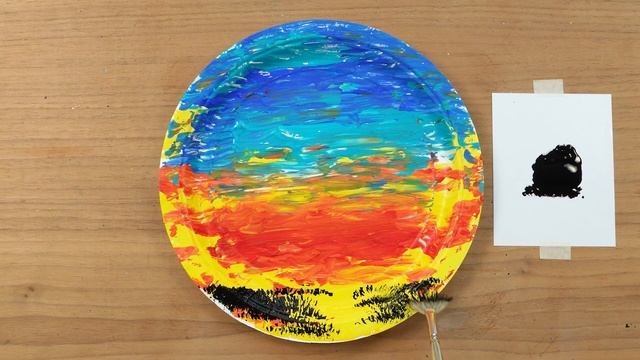 Как нарисовать закатный пейзаж! Самоучитель рисования для детей на бумажной тарелке