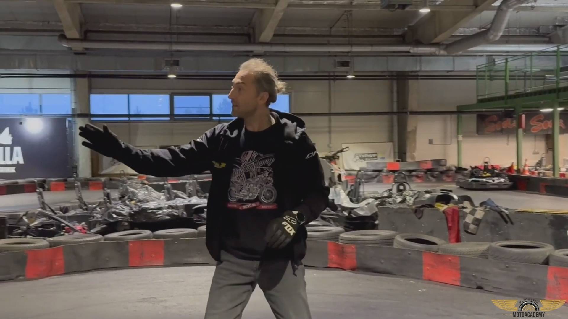 Дмитрий Трифонов, основатель МотоАкадемии Екатеринбург, комментирует тренировку курсантов, отмечая моменты, на которые стоит обратить внимание