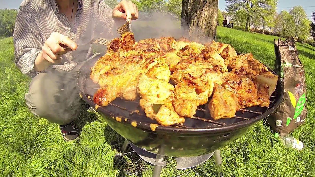 Традиционно справляем день рождения Арины на природе. Делаем вкусные шашлыки и кушаем сладкий торт.