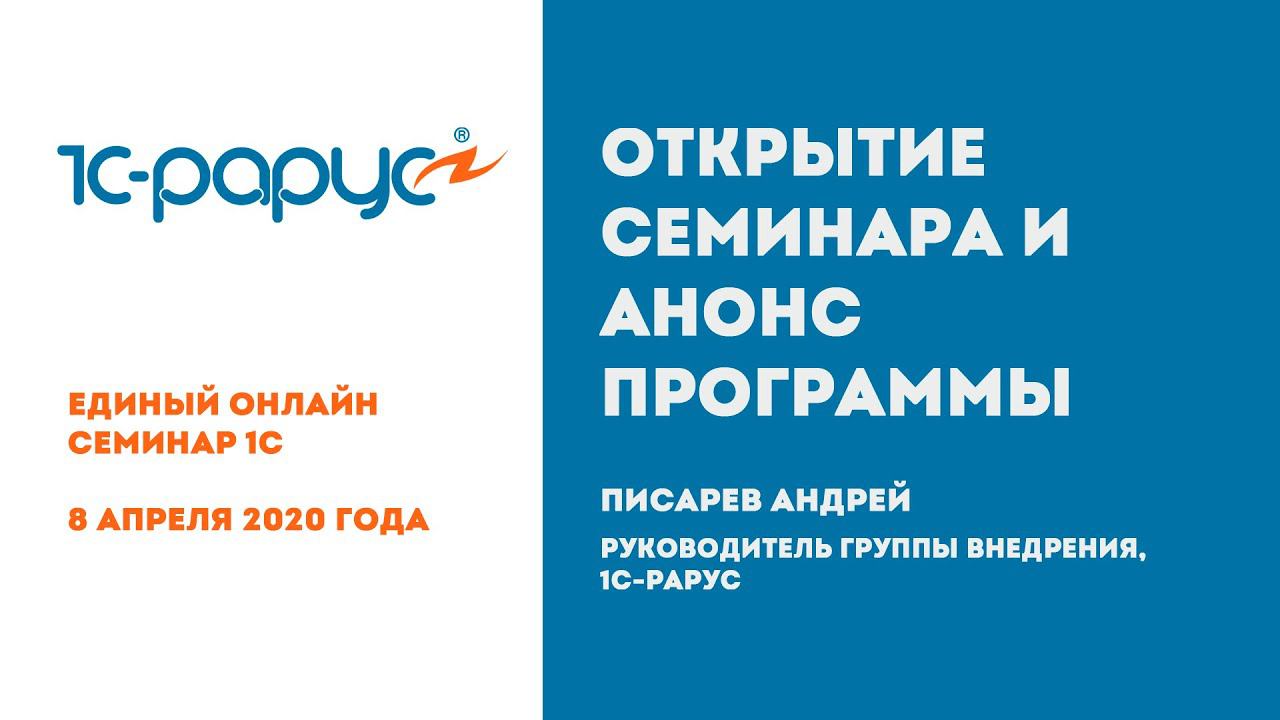 01. Открытие семинара и анонс программы — Писарев Андрей [Единый онлайн-семинар 1С, 8 апреля 2020]