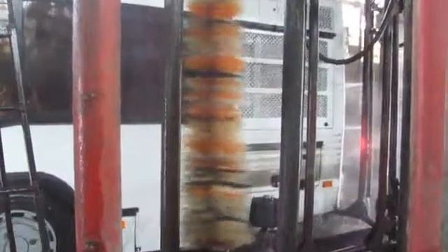 Новый автобус проезжает через мойку. Город Пенза