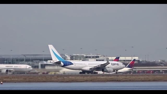 Подборка взлет больших самолетов в США Нью-Йорк. Взлетают самолеты Аэробус A380 Аэробус A340